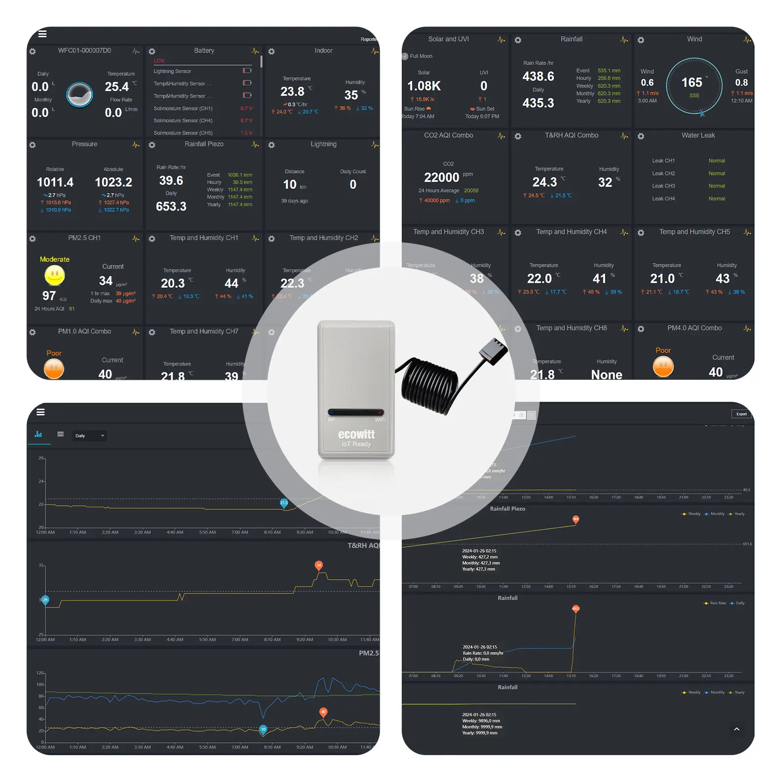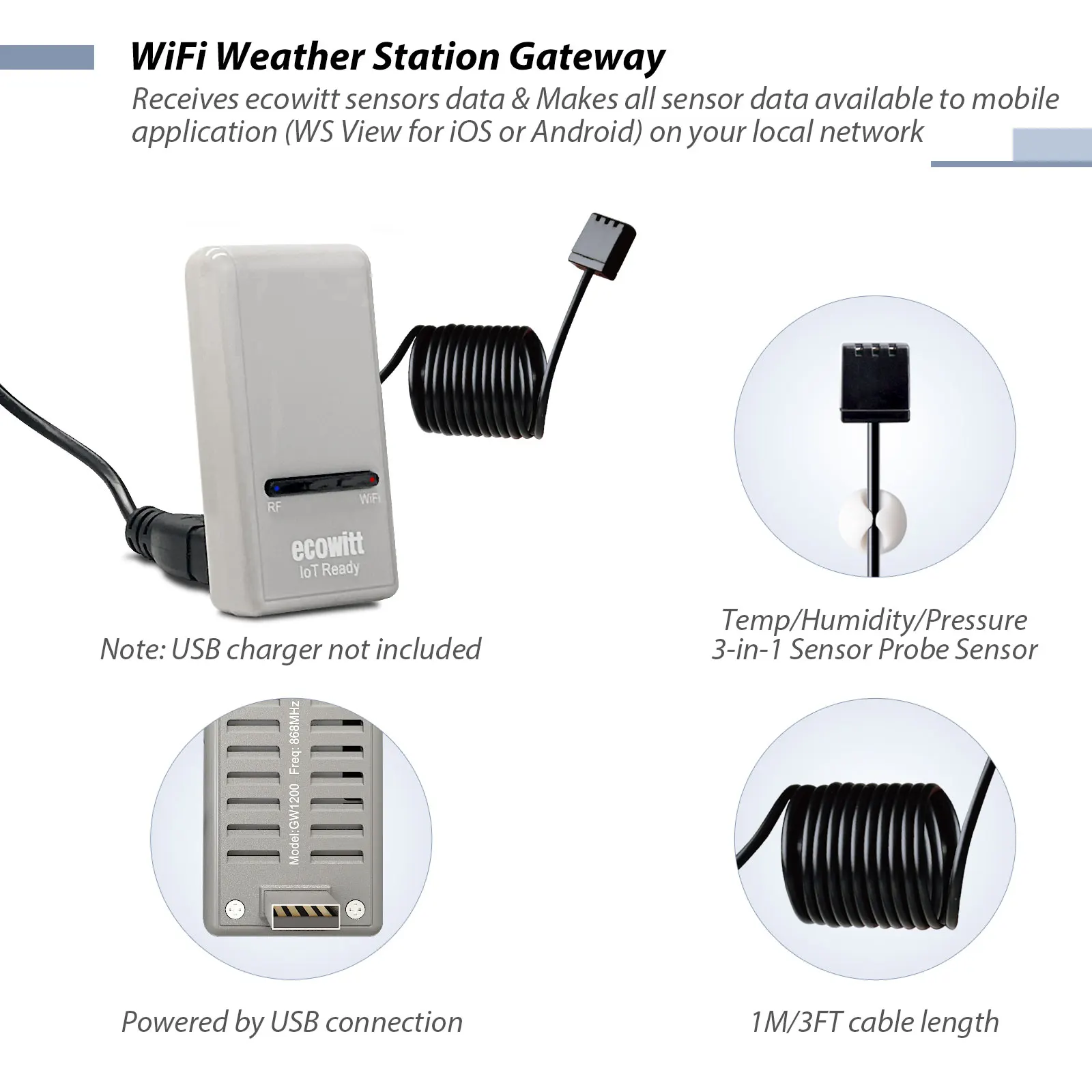 Ecowitt GW1200 Wi-Fi Hub Gateway - built-in Thermometer Hygrometer Barometric Pressure Sensor, Support IoT Devices WFC01 & AC1100